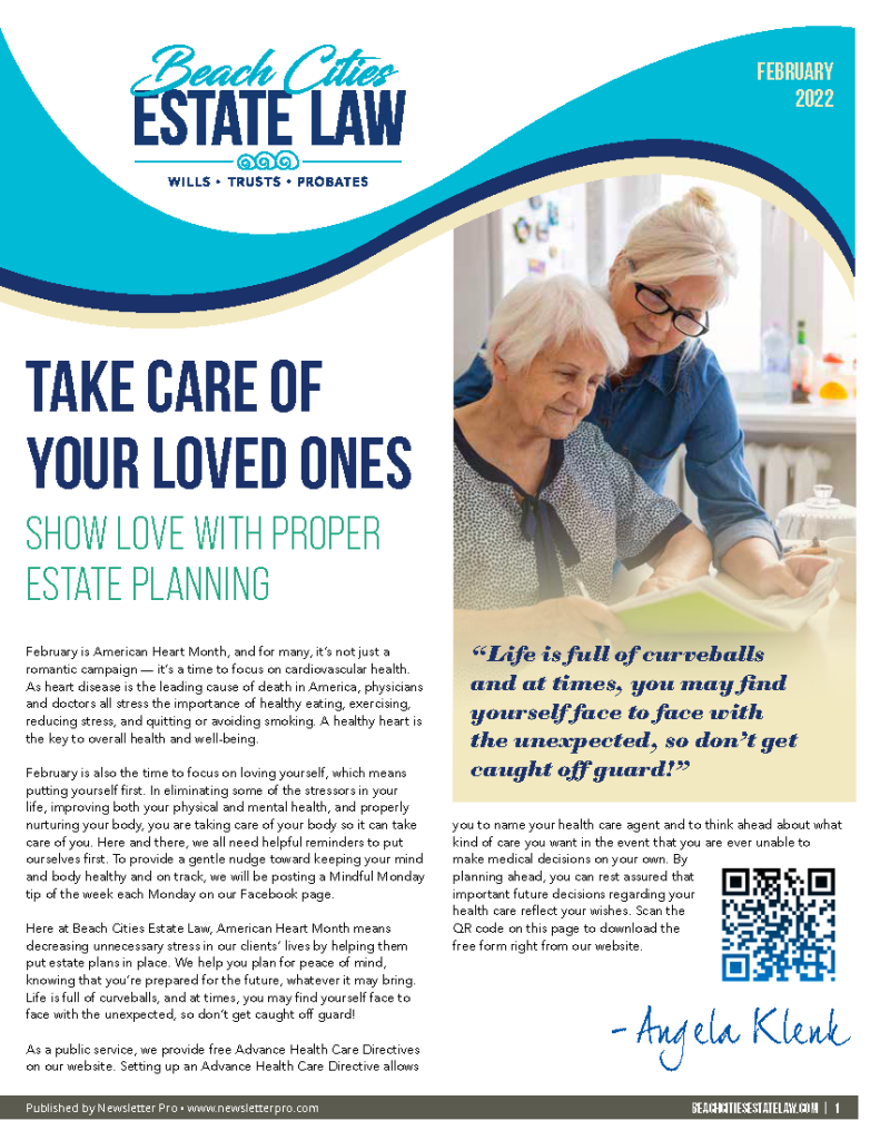 Take Care of Your Loved Ones: Show Love with Proper Estate PlanningFebruary 2022View the Full Article